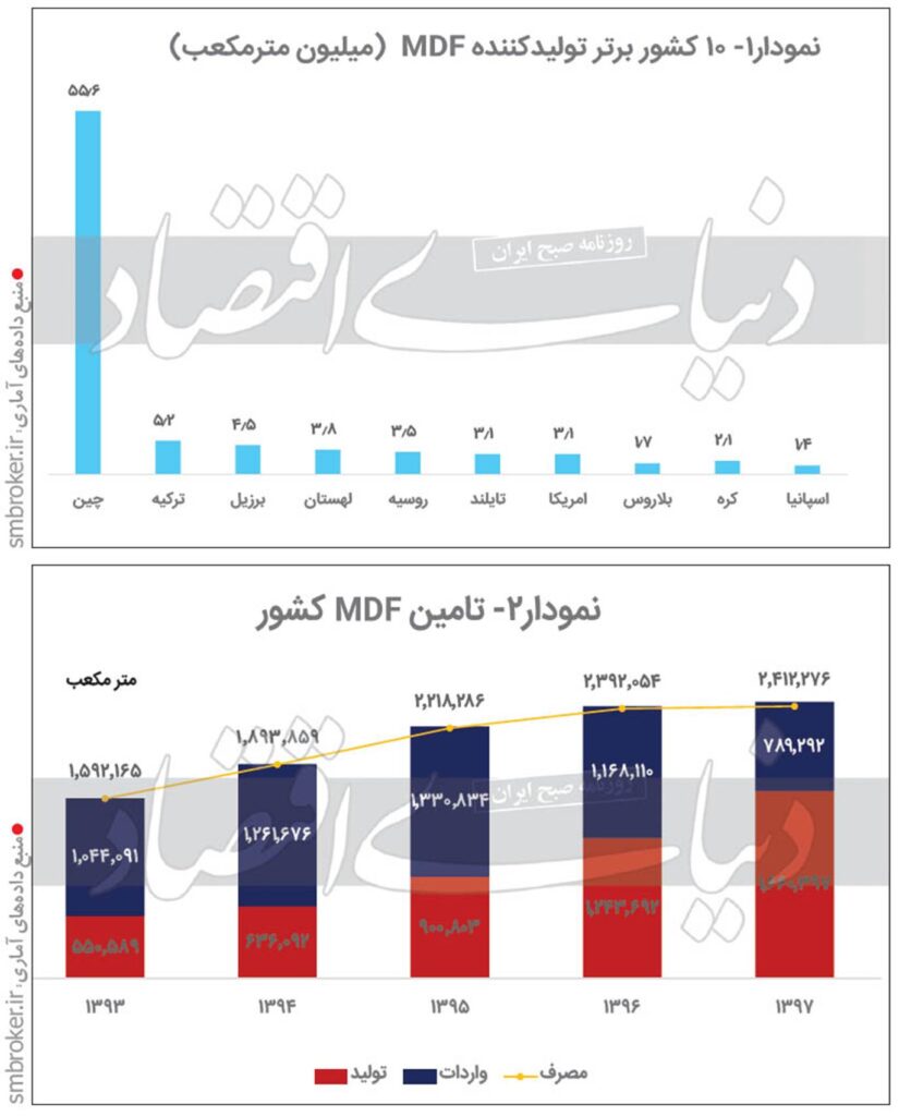ظرفیت تولید امدیاف ایران حدود 5/ 2 میلیون مترمکعب است. صنعت چوب و فرآوردههای چوبی کشور با در برگرفتن حداقل صدهزار واحد صنعتی، صنفی و آموزشی و فراهمکردن 9درصد اشتغال صنعتی کشور، نقش مهمی در توسعه صنعتی اشتغالمحور کشور دارد. از مزیتهای مهم این صنعت میتوان به سرمایهبری کمتر و اشتغالزایی بیشتر نسبت به صنایع مشابه و امکان توسعه در تمام مناطق جغرافیایی کشور اشاره کرد. با وجود این، با توجه به فراهمنبودن بستر تامین مواد اولیه موردنیاز این صنعت در داخل به دلیل کمبود آب، کمبود منابع جنگلی و دشواری واردات فرآوردههای چوبی به دلیل مشکلات ناشی از گرانی و کمبود ارز، تحریمها و…، توسعه این صنعت محدود و در حد برآوردهشدن بخشی از نیازهای داخلی بوده است. در سالهای اخیر تولیدات امدیاف درکشور روند رو به رشدی داشته و از حجم واردات تا حدی کاسته شده، اما همچنان بخش قابلتوجهی از نیاز داخل از طریق واردات تامین میشود.